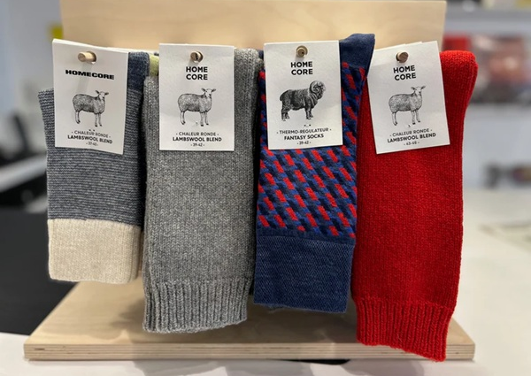 Ziemlich ausgeglichen – bei uns ist es seit Jahren 50:50. Vorne findet ihr die Teile für Herren, hinten die Abteilung für Damen. Vielleicht historisch gewachsen – früher kamen einfach mehr Jungs zum Plattenkauf. Heute bieten viele unserer Labels Kollektionen für beide Geschlechter an (z. B. Armedangels, Dedicated, Thinking Mu, HERB, Mazine), einige arbeiten konsequent unisex (OLOW), andere designen ausschließlich für Damen (Lanius, SKFK, Les Racines du Ciel).
