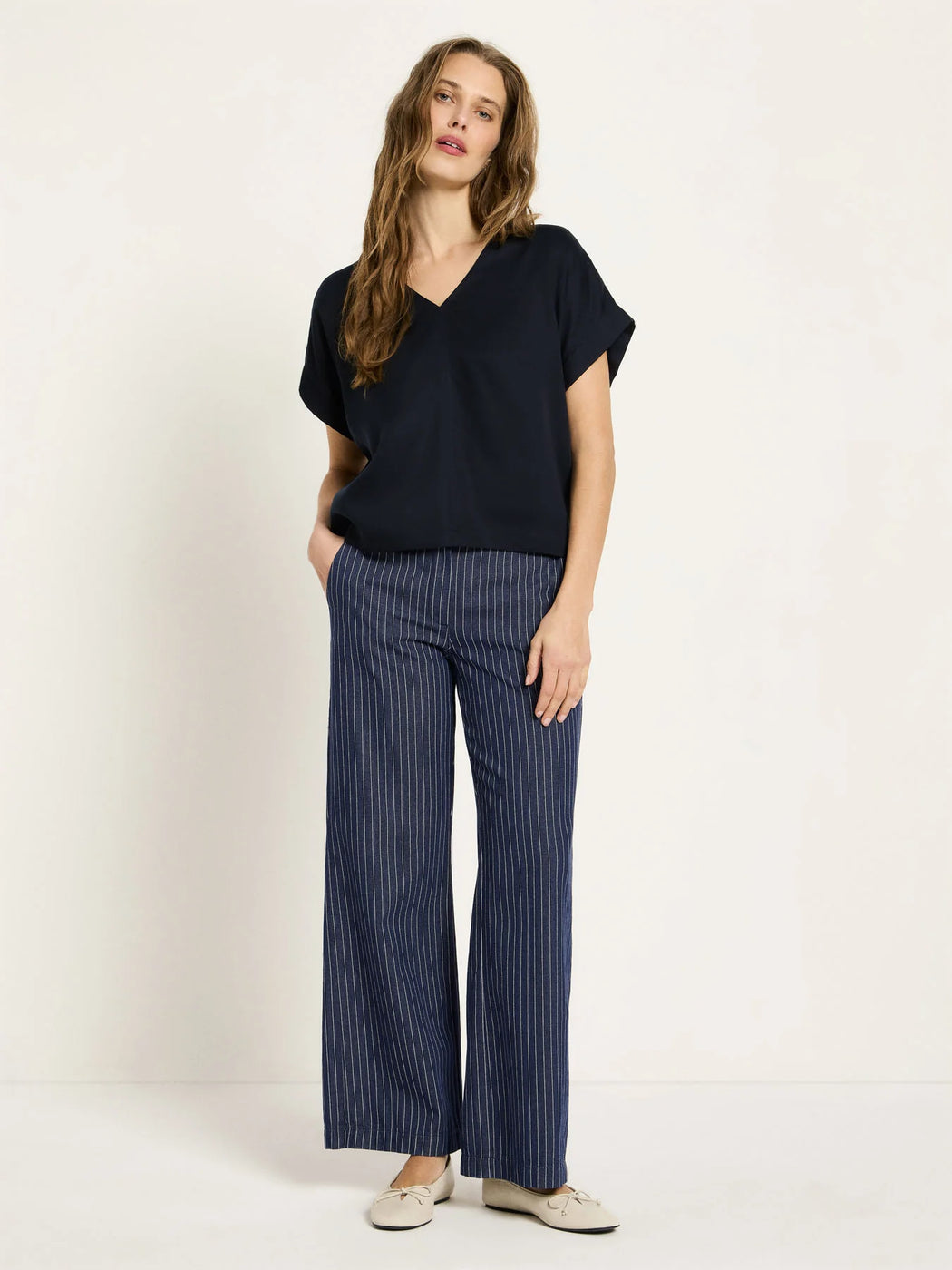 Dieses Blusenshirt aus TENCEL™ Lyocell überzeugt mit seiner fließenden Silhouette und einem femininen V-Ausschnitt, der dem Design eine moderne Note verleiht. Die weiten, kurzen Ärmel unterstreichen die luftige Leichtigkeit, während das atmungsaktive Material für ein besonders angenehmes Tragegefühl sorgt – ein elegantes Essential für Alltag und besondere Anlässe.