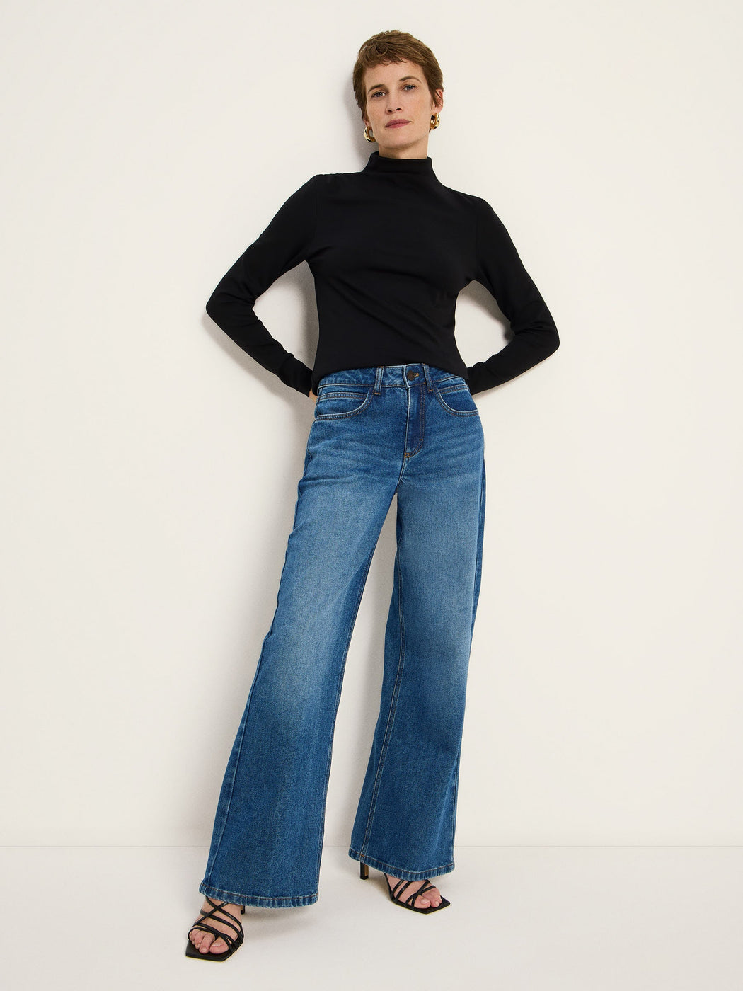 Das weite Bein sorgt für eine entspannte Silhouette, während der mittelhohe Bund für eine schmeichelhafte Passform sorgt. Eingearbeitete Bewegungsfalten schaffen nicht nur eine optimale Passform, sondern auch einen einzigartigen Bewegungseffekt, der der Jeans eine dynamische Note verleiht. Der dezente Abrasion-Effekt rundet das Design ab.